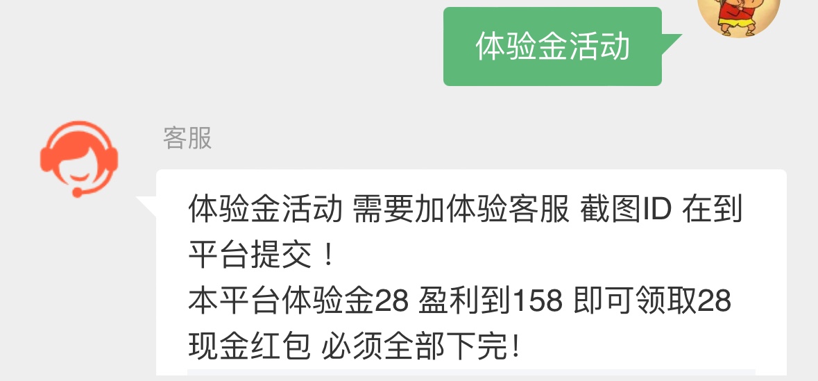 本平台体验金28 盈利到158 即可领取28现金红包 必须全部下