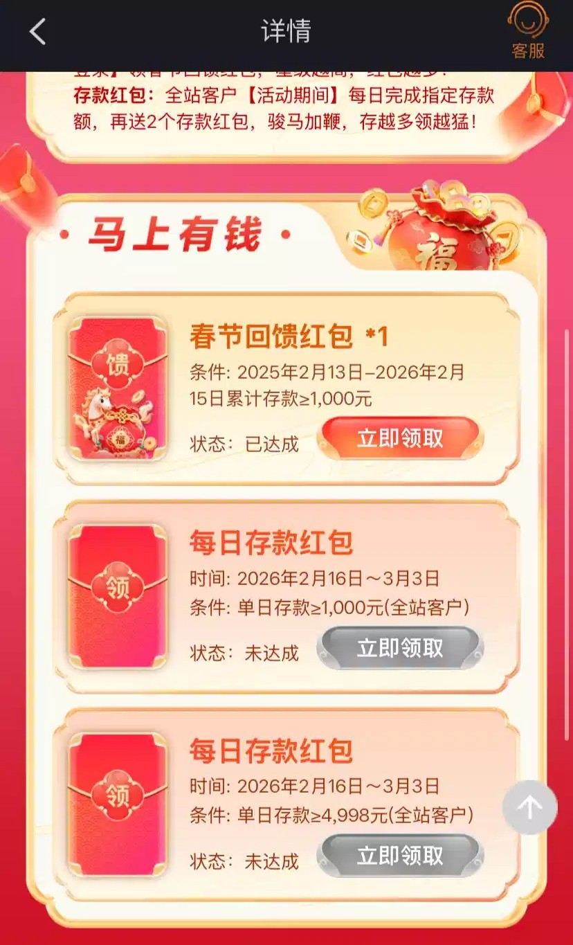 年度存款回馈去年2月15号至今年2月15号存款有143U=1000RMB的兄弟可以到优惠第一个领取彩金